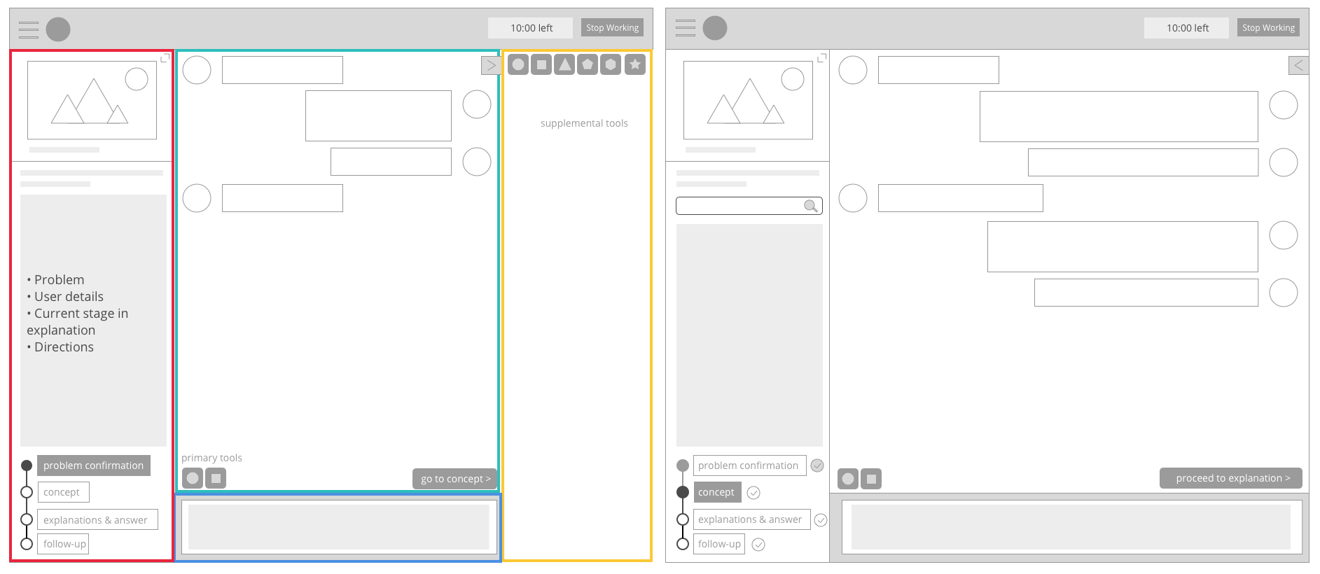 Design a workspace to allow experts to send smaller pieces of content more frequently. It should enable experts to provide partial step-by-step explanations in order to decrease time intervals between expert and student communication and increase the perception of “speed”.