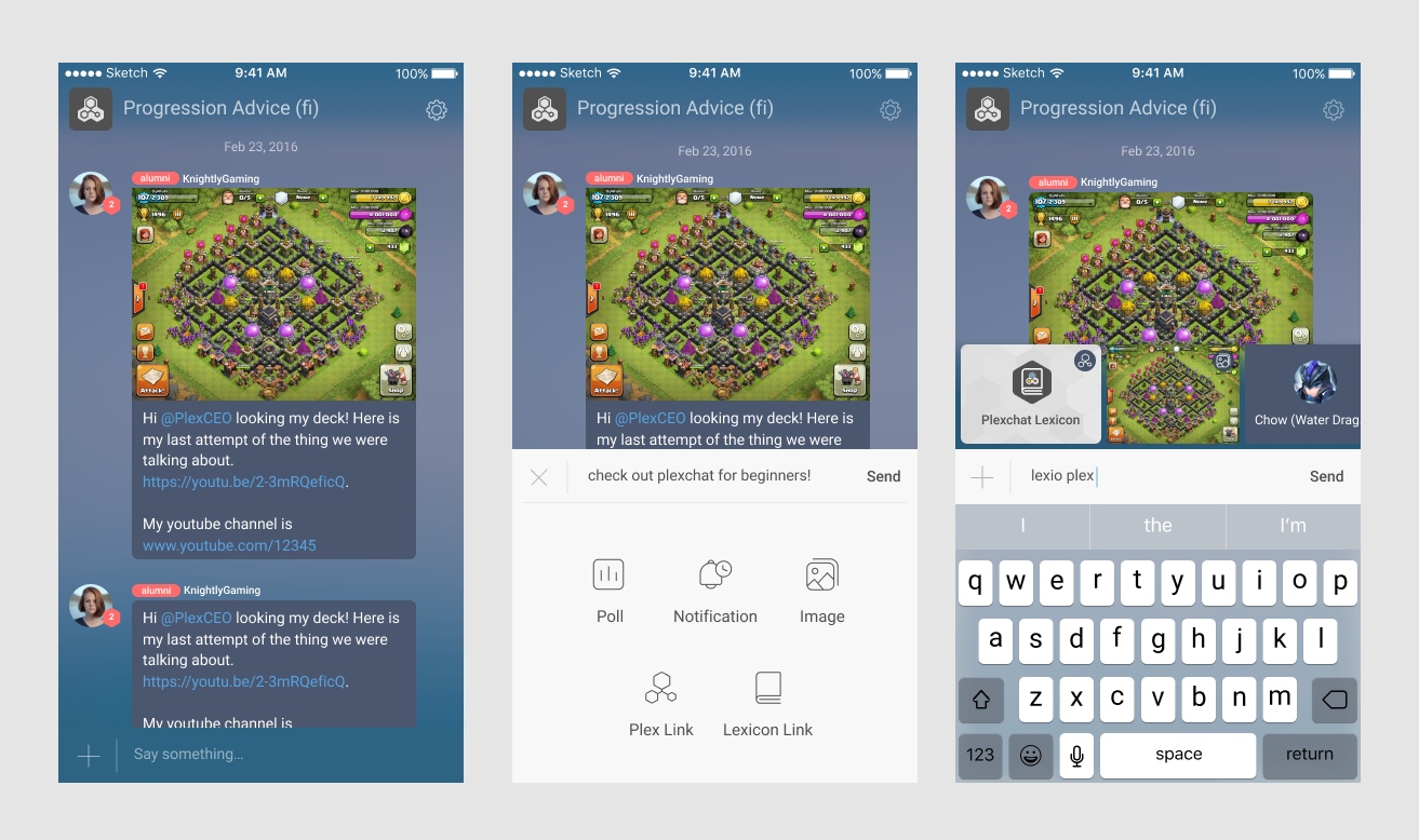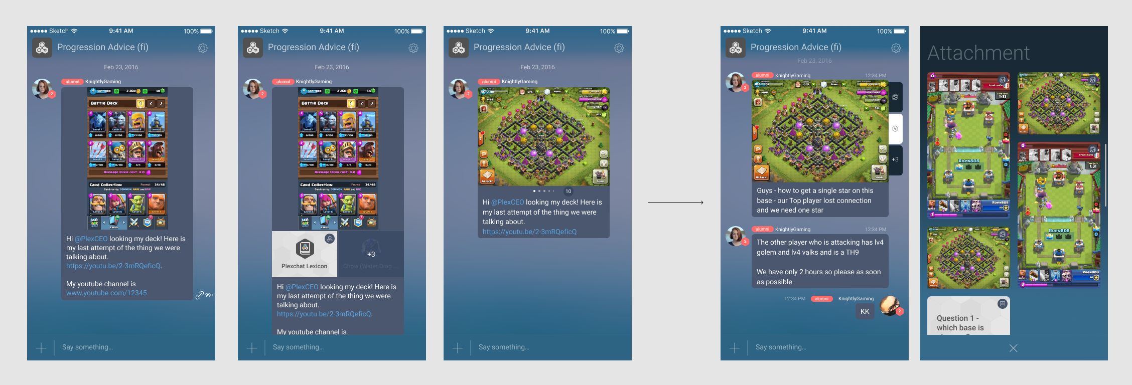 The attachment is one of the crucial components around the re-design - by allowing users to post multiple multi-media content at once. The flexibility is really important as it suits the need of different users. The communities in Plexchat operate like communities inside of a mobile game - there are leaders, moderators and regular members. It also reflects the mobile gaming ecosystem of streamers, audience and e-sports.