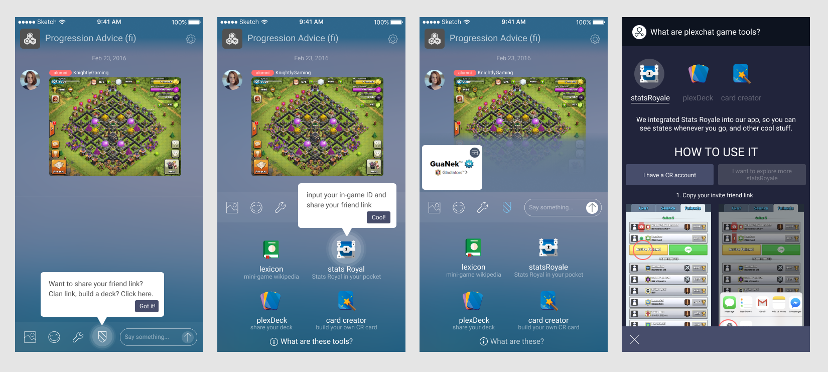 One major differentiator Plexchat has is the embed - like widgets inside of the chat app to allow user post rich content, instead of a boring URL, so we can capture the audience for the specific game, and make the app more sticky to use.