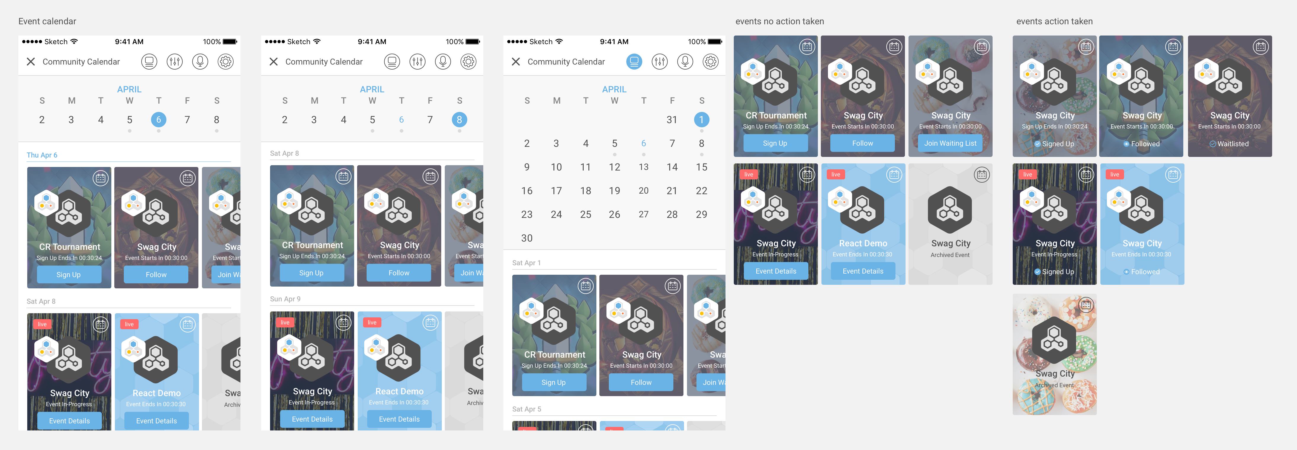 I kept working on event calendar design, for the future scope of how to make it easy for members of any community to discover and participant in events.
