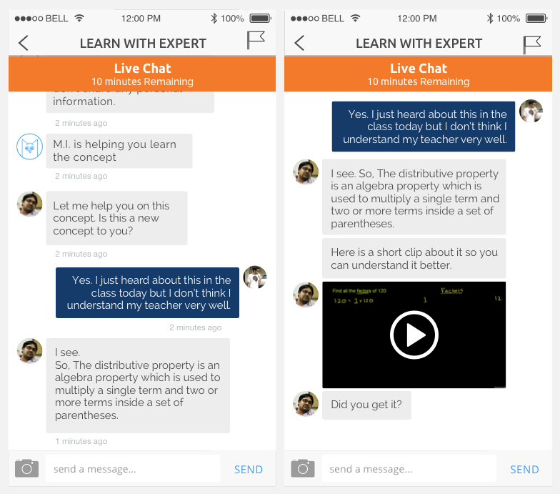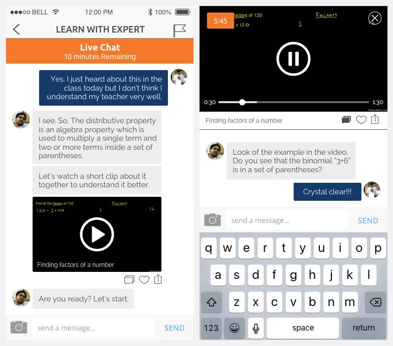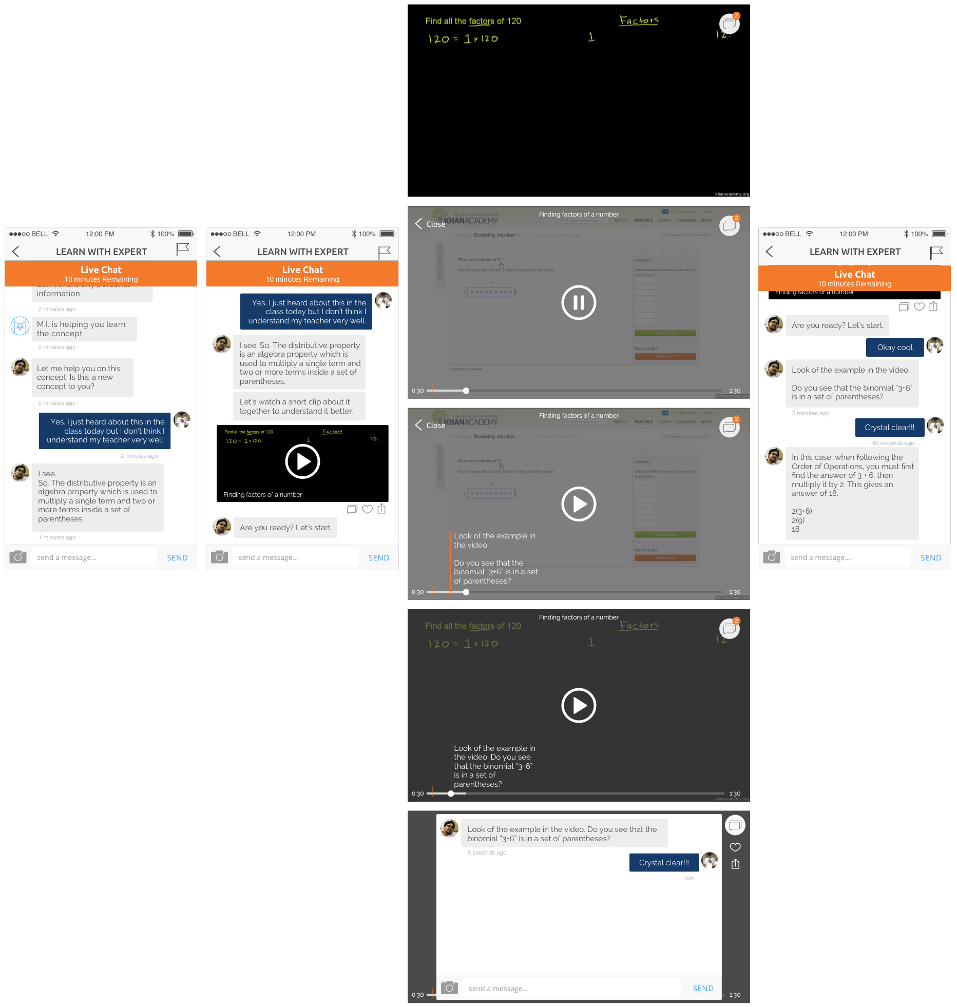 Design a product experience for students during a chat session that allows the study expert to insert a video to supplement the concept that the student is trying to learn.